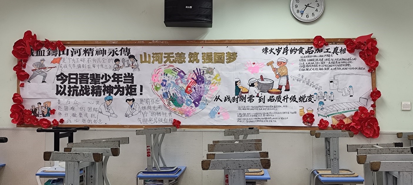 活动期间,各班级紧紧围绕主题,巧妙构思,精心设计,创作出了一幅幅主题鲜明、内容丰富、设计新颖的板报作品。同学们在回顾抗战历史、讴歌英雄事迹、阐释抗战精神内涵的同时,更注重结合自身专业特点,将爱国情怀与职业理想、专业技能紧密融合,展现了新时代职教学子独特的视角与风采。这些板报作品不仅仅是一堂堂生动的爱国主义教育课,更是一次次职业精神与专业技能的集中展示。