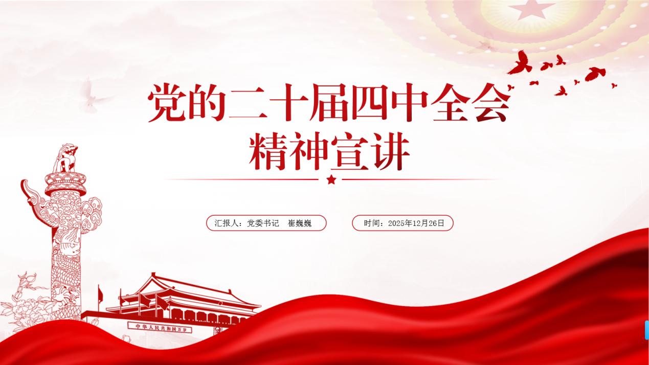 为深入学习宣传党的二十届四中全会精神,12月26日下午,学校党委在东六楼报告厅召开全校党员大会,党委书记崔巍巍作主题宣讲,全面解读全会精神,谋划学校未来发展蓝图。校领导班子成员、全体中层干部、全体党员、积极分子及发展对象、党外人士、青年教职工参加了会议。