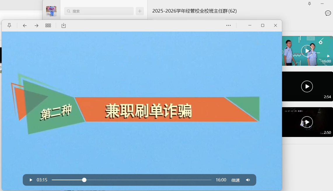 学校多措并举拓宽宣传渠道,推动反诈教育走深走实。学校开展了反诈宣传视频活动,学生积极参与录制视频报送学校;学校推选优秀作品依托校园电子屏循环播放反诈视频、提示语;通过各类工作群定向推送,打通宣防“最后一公里”;各班主任利用大课间,组织学生集中观看反诈专题视频,结合青少年易遭遇的诈骗案例,用通俗语言拆解套路、讲解防范方法,学生认真观看、主动记录,会后纷纷交流心得,进一步加深了对反诈知识的理解,切实提升了自我保护能力。