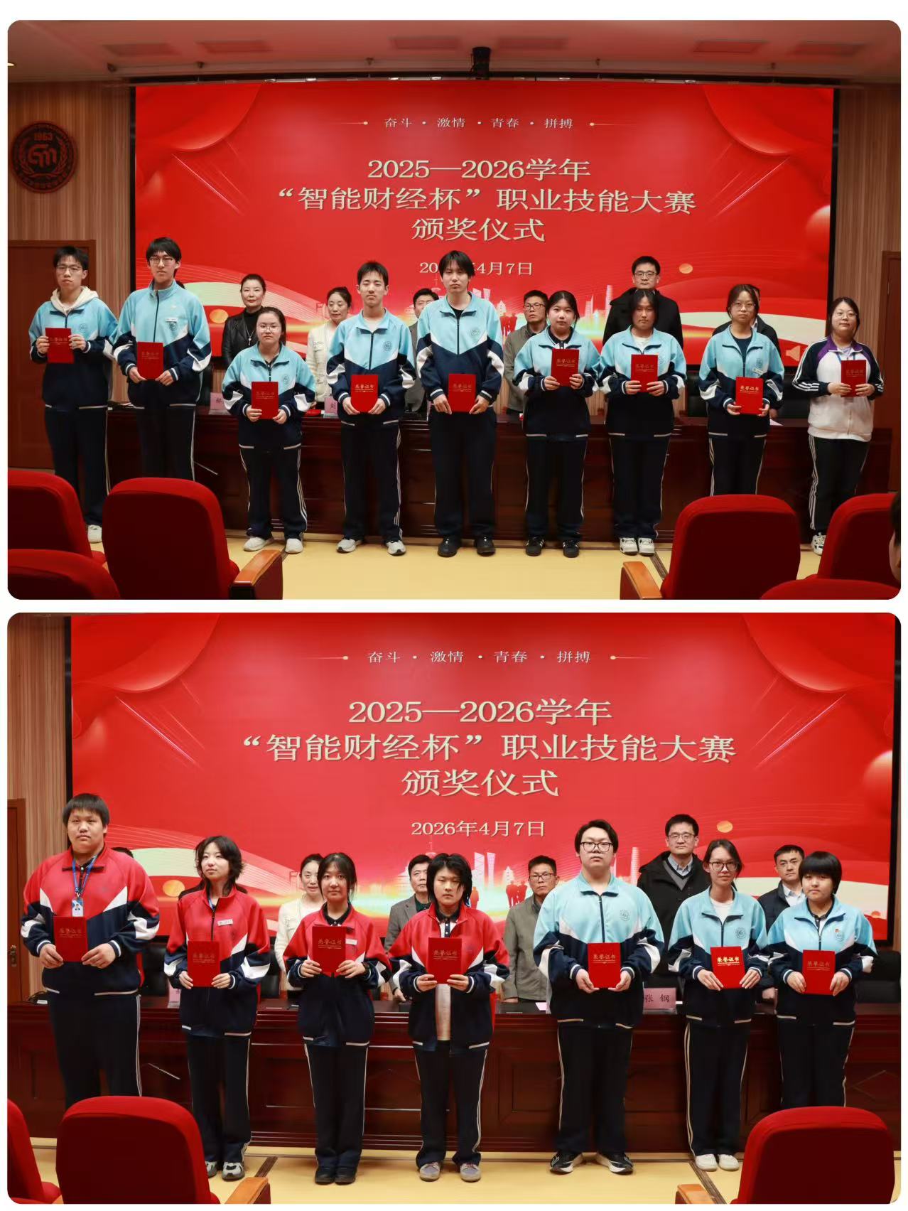 2026年4月7日下午,北京市经济管理学校财经系“智能财经杯”职业技能大赛颁奖仪式在东楼六层阶梯教室隆重举行。本次大赛秉持“以赛促学、以赛促教”的宗旨,严格遵循公开、公平、公正的原则,全面展现了财经专业学生的专业素养与实践操作能力。经激烈角逐与严格评审,共计121人次荣获佳绩。