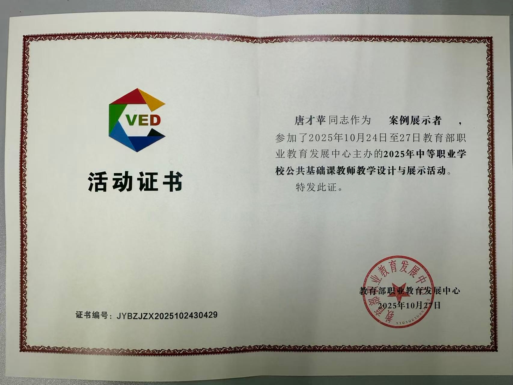 今后,学校将以此次成绩为新起点,持续深化教育教学改革,聚焦师资队伍建设核心任务,通过常态化教研、专业化培训等举措提升教师教学能力,不断探索职业教育高质量发展新路径,推动学校教育教学工作再上新台阶、再谱新篇章。