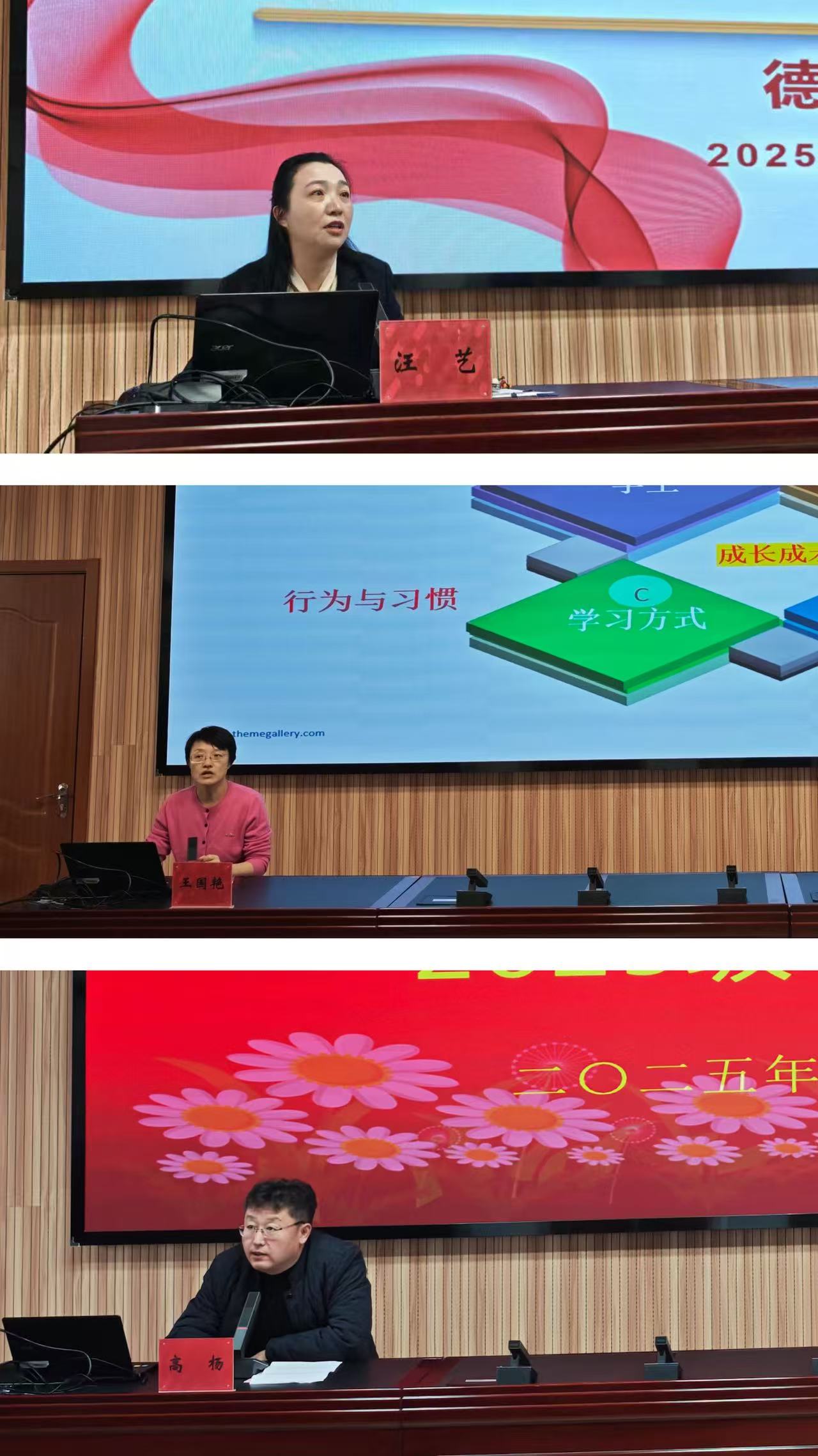 随后,德育处主任汪艺就学生常规管理、在校表现、德育活动等情况进行了详细介绍,重点阐述了学校在培养学生良好行为习惯、健全人格、增强社会责任感等方面的具体措施,并就毕业生的升学、就业等毕业安排和准备工作向家长们进行了说明,以便家长能够更好地协助和指导孩子。教务处副主任王国艳也就学校的教育教学情况做了详尽的汇报。她详细解读了各年级的教学计划、学期整体安排、课程进度以及考试安排等,让家长们对学校的教学体系和学生的学习过程有了清晰的了解。在强调校园安全的重要性方面,保卫处主任高杨向全体家长进行了细致的安全工作提示,提醒家长们关注孩子的居家和出行安全,共同构筑安全的校园环境。