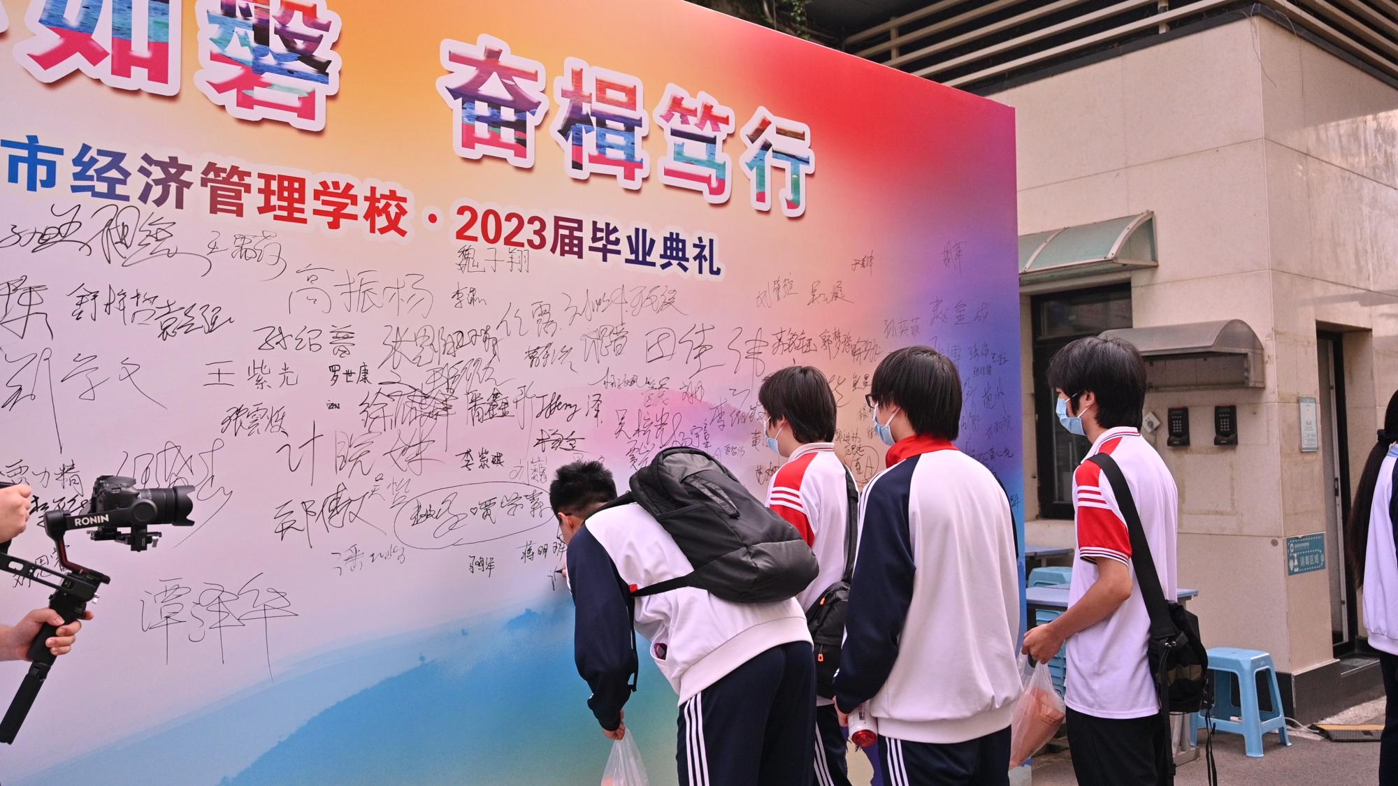 归来的激动,离别的不舍,千言万语汇聚成《2023届班主任寄语》专题纪念片,每张照片记录着青春的岁月;每个笑脸承载着过往的欢乐;每句话语寄托着班主任的不舍,在这离别之日师生一起回忆2023届毕业生们在学校度过的三年青春华章。最后,全体毕业生齐唱校歌,毕业典礼在嘹亮的校歌声中落下帷幕。