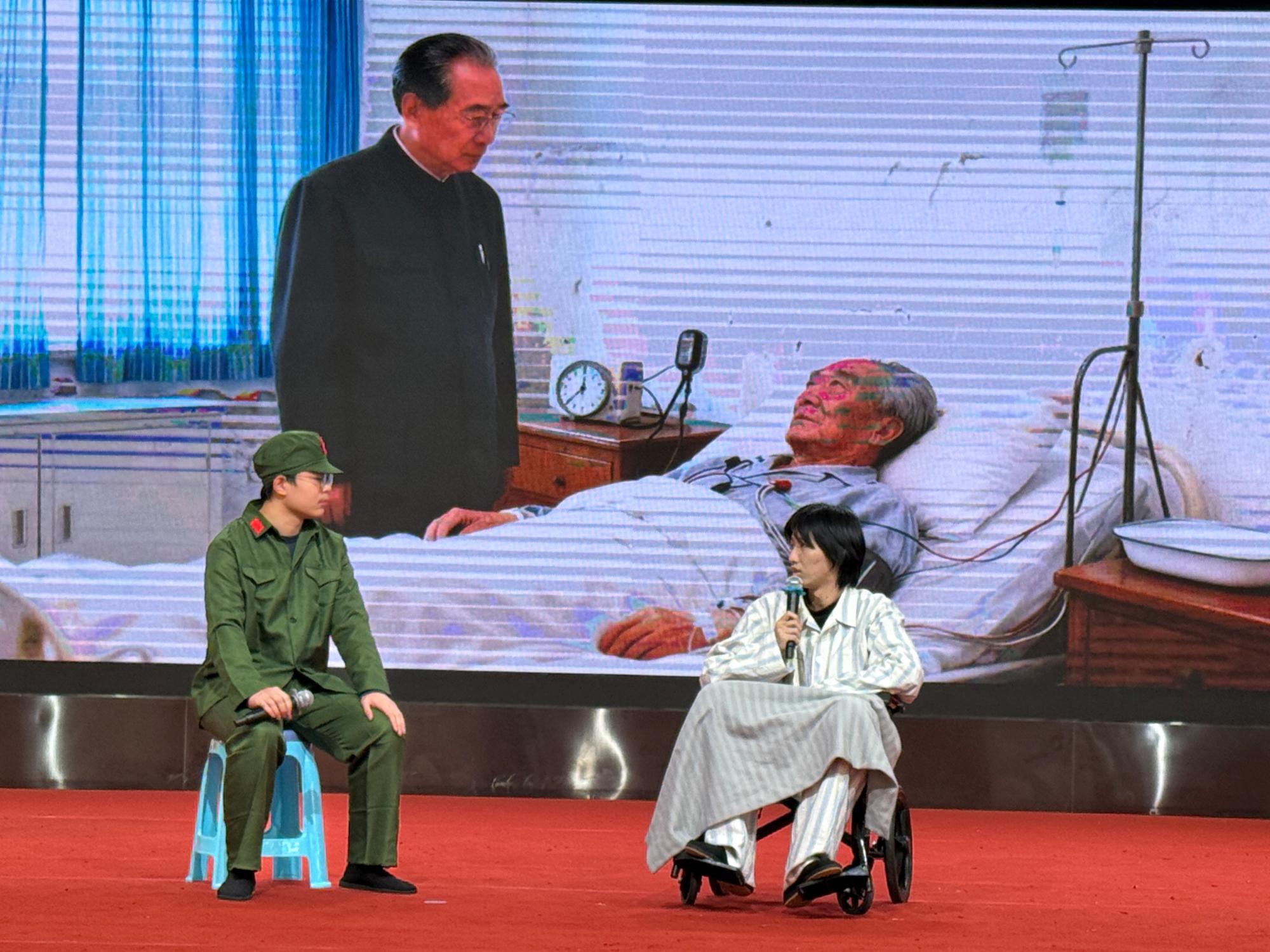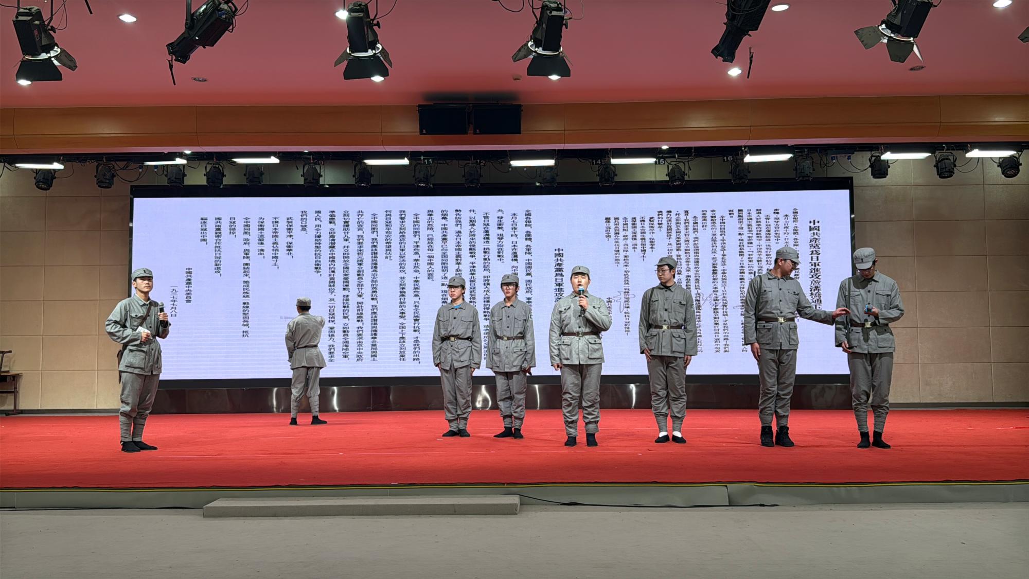 汇报结束后,我校2023级数艺1班的30名学生带来了《线条诉征程色彩绘和平》主题班会展示。学生们通过情景剧演绎、经典故事讲述等形式,回溯1931 年至今的重要历史节点,深切体悟革命岁月中澎湃的爱国热忱与奋斗激情。展示中,他们生动讲述先辈们以宣传画、报纸、插画等艺术形式投身抗战的峥嵘往事,更明确了身为数字艺术专业学子的责任—— 以视觉语言为载体,深挖抗战精神的时代内涵,将其转化为直观可感的视觉符号,持续传承与传播。数艺青年的时代使命,始终与国家发展同频共振,同向而行。