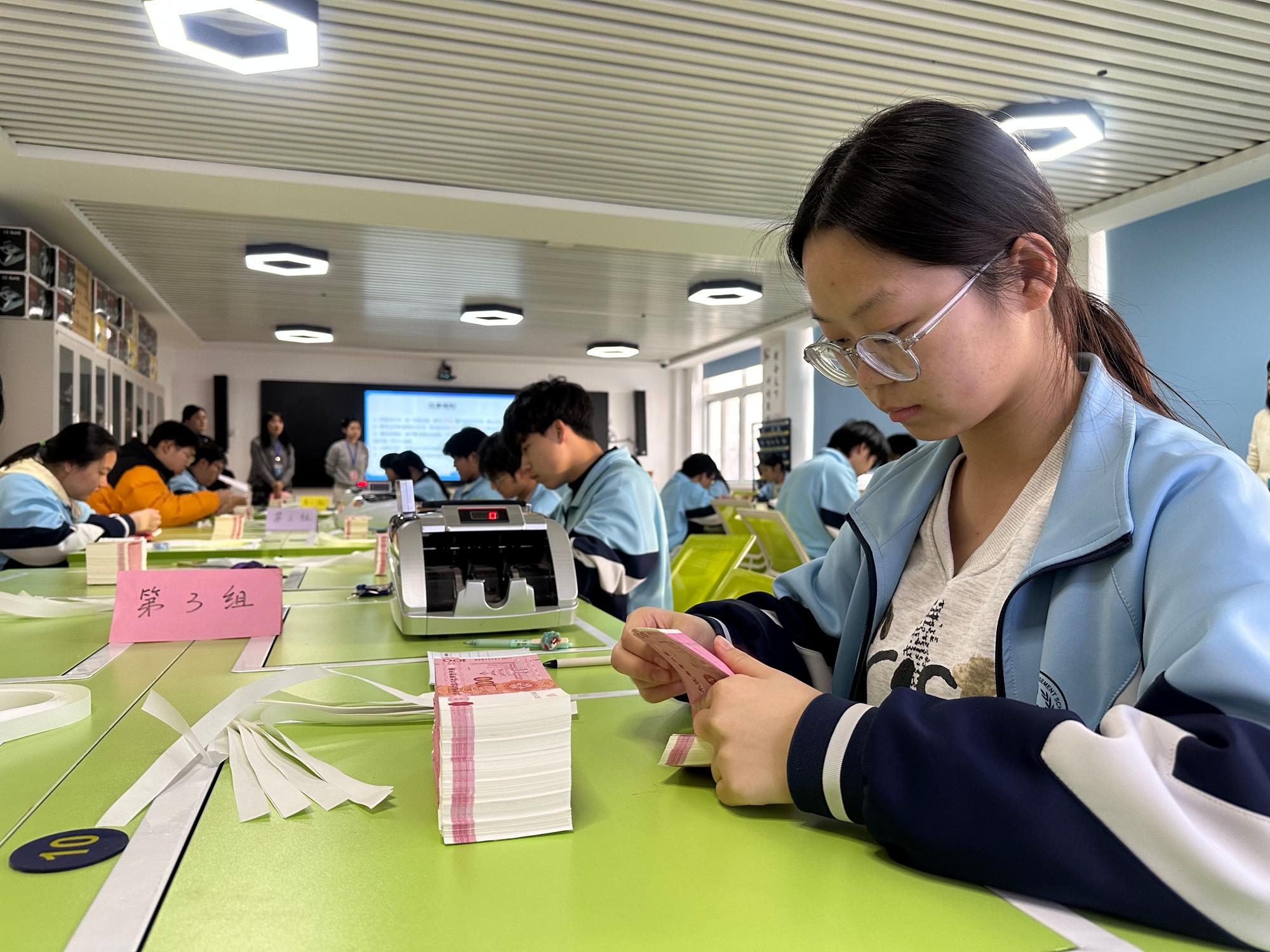 比赛期间,各赛场秩序井然。在手工记账赛场,选手们凝神静气,依据原始凭证熟练填制记账凭证,笔墨间尽显严谨细致;在票币核算和财经综合技能赛场,快速的点钞声与精准的键盘敲击声交织,考验着选手的速度与准确度;会计基础知识赛场,学生笔尖流淌的是对专业理论的深刻理解。全体参赛选手全情投入,将日常所学转化为赛场上的从容应对,充分体现了扎实的训练成果。
