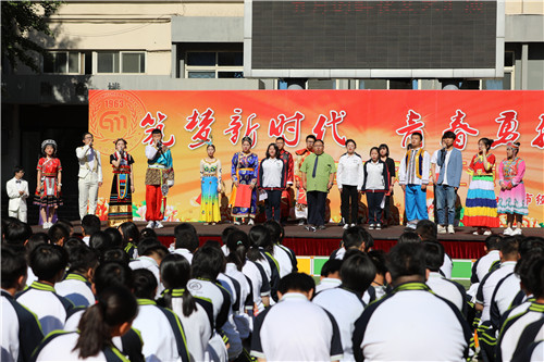 在青春激昂的开场舞中,文艺汇演拉开了序幕。经典诵读《少年中国说》、曼妙多姿的汉服展示、动感活泼的健美操、自编自导的校园情景剧、端庄大方的礼仪展示、独具特色的动漫舞蹈、历史悠久的武术与传统书法、校歌合唱等节目接连登场,为全校师生带来一场青春与激情的视听盛宴,悦耳的歌声、优美的舞姿,把现场气氛一次次推向高潮,赢得同学们阵阵欢呼。我校教师合唱节目《走进新时代》、《歌唱祖国》,展现了教师对祖国的热爱之情,赢得了在场师生的热烈掌声。