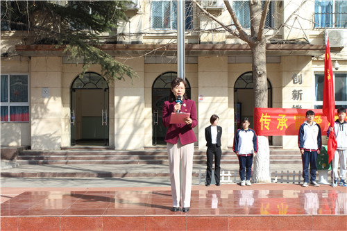 伴随着庄严的升国旗仪式,主题教育活动正式开始。陈建南校长、党委李彩虹书记、王皓玉副校长、秦建伟副校长、李添龙副校长和相关科室学生管理负责人为2017-2018学年度26名“学雷锋志愿服务标兵”学生代表颁发荣誉证书,鼓励他们继续争做新时代优秀学雷锋志愿服务标兵;校团委干事邱麟婷向全校师生宣读《学雷锋志愿服务活动倡议书》,学生处孙光亮副主任为2018级青年志愿者服务队授旗,2018级食品1班吕孟媛代表青年志愿者发言;在2017级会计3班张乐璇带领下,全校青年志愿者面向国旗庄严宣誓。