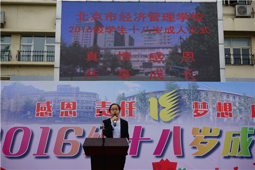 为进一步加强青少年理想信念教育,贯彻立德树人根本任务,引导青年学生增强公民意识,激发社会责任感和历史使命感,4月18日下午,经管校在学校操场,为2016级年满18岁的441名在校学生举办了以“感恩、责任、梦想、成长”为主题的十八岁成人仪式。学校领导班子集体、中层干部、班主任老师和260余名16级学生家长参加活动。2017级、2018级全体同学800余人观礼。