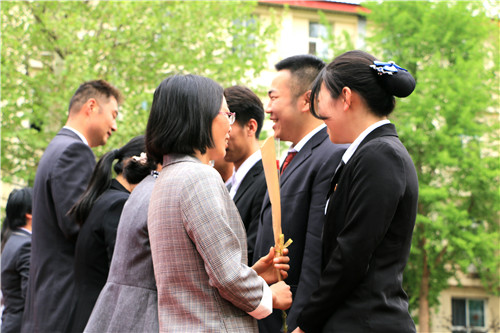 学生家长代表王凤兰女士、班主任代表韩旭老师先后发言,表达了对2016级同学们美好的祝福、殷切的希望;16级平面(3+2)2班李嘉琪代表16级学生讲述了成长的感悟和对未来生活的美好向往。270余名学生手持鲜花与家长和班主任相拥,向他们送上最真挚的感谢和祝福,感谢家长和老师的无私哺育和关爱。