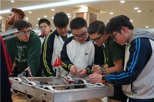 交流会上,Vanden中学机器人基地的指导教师和学生为我校师生介绍了机器人基地建设的基本情况,详细介绍了机器人基地参加世界机器人大赛的参赛过程,分享了他们的经验。美方中学教育关注解决问题能力的培养,给我们留下了深刻的印象,值得我校借鉴。交流过程中,我校与Vanden中学机器人基地就技术交流、培训、参加国际比赛签订了合作意向。