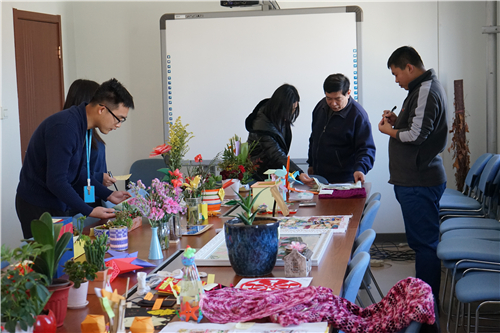 当天下午,学校工会还邀请了各工会小组的男同志们到展览现场进行投票、评选。现场热闹非凡,交流氛围十分浓郁。十字绣精美的刺绣手法,赢得男同志们称赞叫好;气势磅礴的书画作品引来不少教职工驻足欣赏。大家且看且评,展览现场一片欢声笑语,为展览活动增添了节日的喜庆。最终,通过评选,从100余件展品中评选出了20余件作为优秀作品。